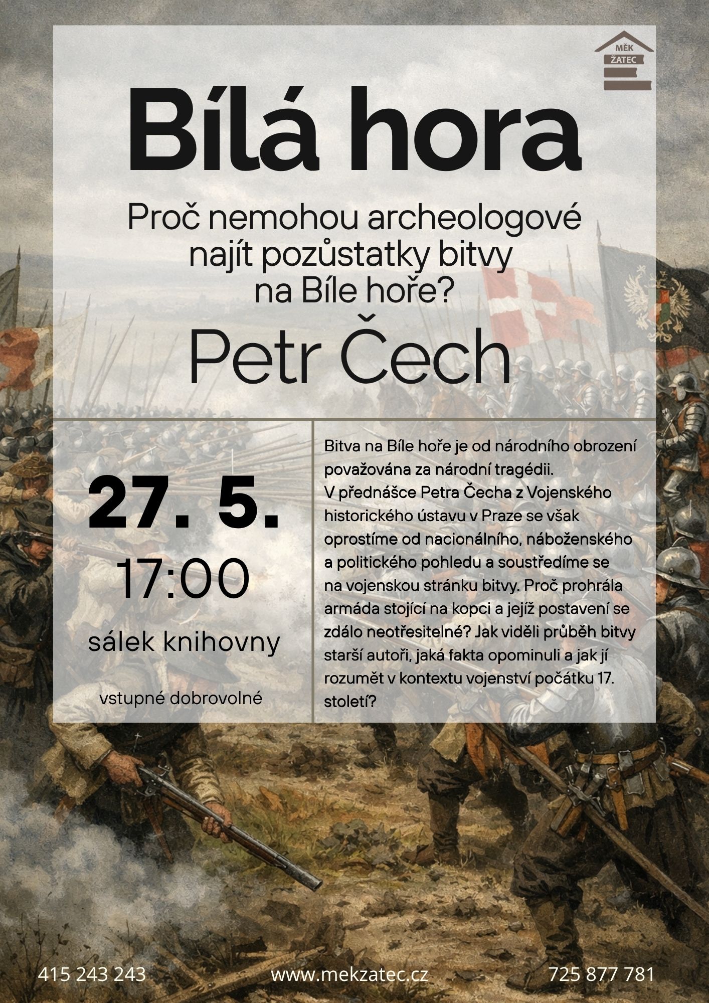 Proč nemohou archeologové najít pozůstatky bitvy na Bílé hoře? Přednáška Petra Čecha z Vojenského historického ústavu v Praze.