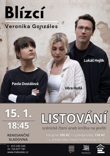 Scénické čtení z knihy Blízcí v podání Pavly Dostálové, Věry Hollé a Lukáše Hejlíka.