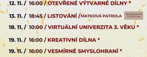 Listopadový program knihovny přináší pestrou nabídku akcí pro děti i dospělé. Těšit se můžete na scénické čtení, tvořivé dílny, besedy i vzdělávací akce.